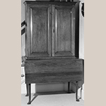 Another use of the single-leaf table in America, according to David Jones, is not a Scottish form at all: There are surviving examples of tables that were used as the base for a cabinet or bookcase, creating a simple desk and bookcase.[104] Three single-leaf tables with attached cabinets or bookcases turned up in the survey, the earliest is a circa 1745-1755 table and bookcase made in central Virginia (Figure 33).
