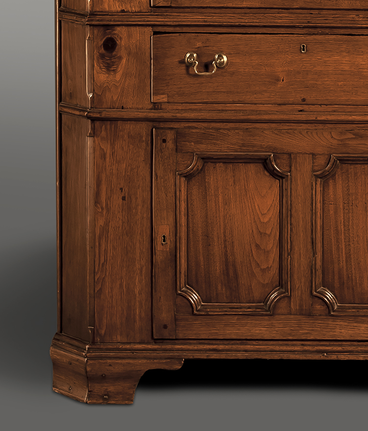 • The chest has French feet—almost all of the chests from the Swisegood school have simple applied bracket feet