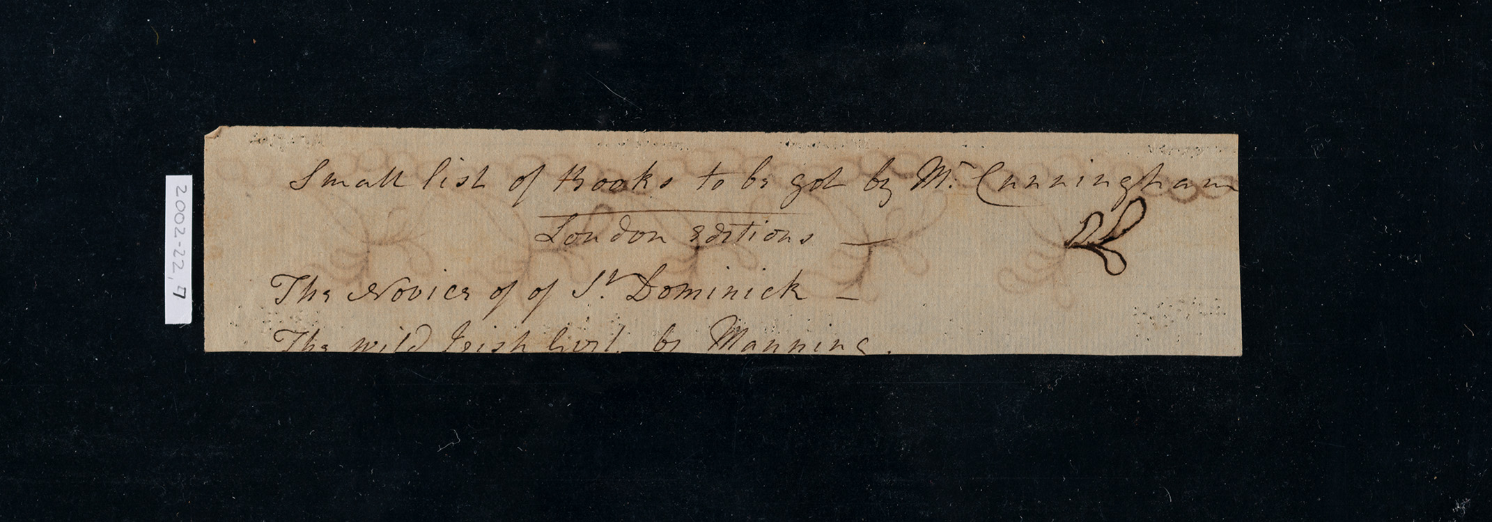 [3] Jean Skipwith requested The Novice of St. Dominick and The Wild Irish Girl: A National Tale, novels written by Sydney Owenson and published in 1806.